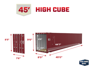 We offer used and new modified shipping containers in a variety of sizes. The standard sizes are 10′, 20′, 40′, 40′ High Cube, & 45′ High Cube. We also are able to provide 20′ High Cube containers in some markets.